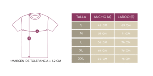 Las medidas son frontales, la mejor forma saber tu talla correcta es medir un polera tuya en una superficie plana y comparar las medidas en la siguiente tabla.
